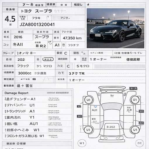 Grade 4.5 indicates a car in excellent condition. Grade R or RA usually signifies that the vehicle has a repair history (accident damage). Our reports provide a breakdown of these grades so you know exactly what you are buying.